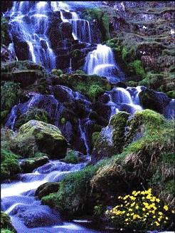 gets louder. You come upon a beautiful, shimmering waterfall. Small creatures