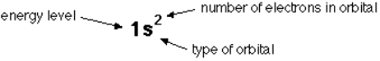 the use of orbital diagrams. The orbital diagrams are boxes in which an arrow up