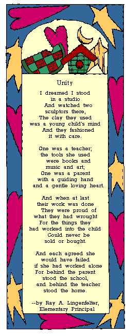 When I first started doing this website, I was a teacher's assistant in the preschool classroom at Houlka Attendance Center, in Houlka, MS. Then, last year I was assigned to the first grade classroom. It was a totally new experience! I have learned a lot in the past two years. The differences in preschool and first grade are amazing. The difference in teachers was also something that took some getting used to. All of the teachers that I've worked with have been top-notch and I am very thankful for that. Their teaching methods are quite different but no two people are alike and the children in their classrooms all seemed to benefit. In preschool, it gave me such a good feeling when I would see a child learn to master counting, or writing their name, or their ABC's. Their little faces would just light up! In first grade, the sense of accomplishment would come when a child would say "Mrs. Regina, I studied last night and I think I'm going to make a 100 on my spelling test". Or when a child who had been struggling would finally learn that to add 1 to a number just meant counting up to the next number. Sometimes it almost seemed as if I could see that light come on in their head. And the smiles!! The smiles are worth a million! I hope you enjoy your visit to my site. I plan on putting more links in the future so please come back and visit anytime! I have now completed my second year as an assistant in the first grade. Starting in August, I will be back in the first grade but with a different teacher and I am delighted! My daughter was in her classroom last year and I think she is an excellent teacher and I am really looking forward to working with her. Wish me luck as I start on this new and exciting venture! ANOTHER UPDATE! It is now August 2002. I loved working in the first grade but I am going to be doing a different job this year. I will still be at the same school but I will be working in the high school instead of the elementary. I accepted a job as the Career Center Technician. This job is something that is very new to me but I really think it will be a challenge that I will enjoy! We start school on August 5, 2002.