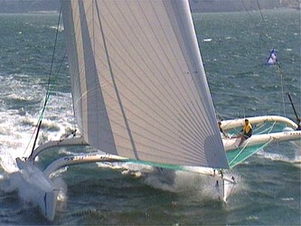 Double vainqueur de la Route du Rhum, multicoque le plus rapide sur 24 heures en solitaire, Bayer en France a toujours été redoutable au large et en solitaire aux mains de Laurent Bourgnon. Mais le plan van Péteghem-Lauriot Prévost, sister-ship à l’origine du Pierre 1er de Florence Arthaud s’est toujours montré moins à l’aise lors des Grands Prix. Un déficit de vitesse dû à la configuration du bateau où les postes de barre sont installés sur les flotteurs et à un manque de cap au près.