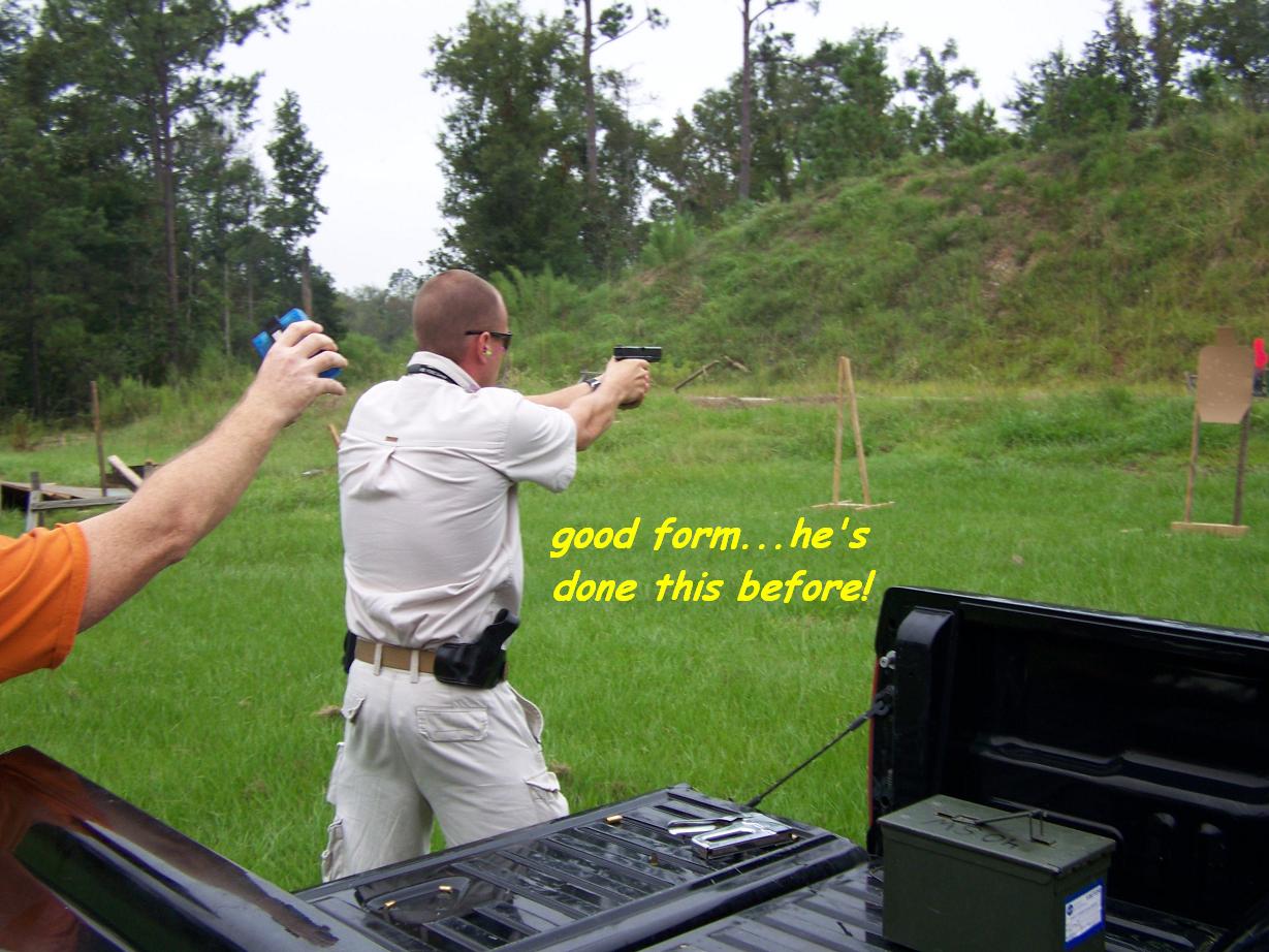 Well, the weather kinda screwed things up - dang hurricanes tend to disrupt everyone's schedules. We also didn't get a lot of pictures. The camera had a bad case of low-battery-itis, which is a shame, because we had a lot of fun! There were only 7 shooters, so we all had plenty of trigger time, including a course of fire using tactical carbines - big fun!
