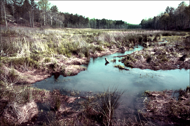 The Butler House, the oldest structure in the area, was located near here. It is believed to have been built before 1820. The Natchez Trace crossed this spring near the tree line at the top of this photo.