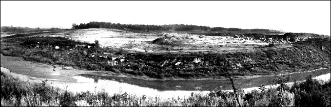John Hanley didn't have a wide angle lens when he created this image so he took two photos side by side and we spliced them together to form a panarama. Gin Branch diversion ditch Fall 1983
