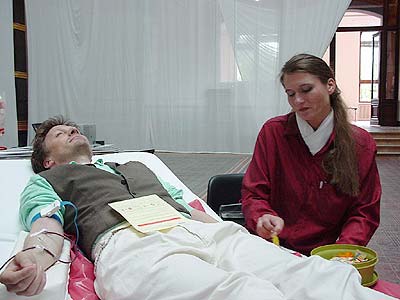 Kaltblütig: Herr Zschokke beim Aderlaß (27.6.2oo2)