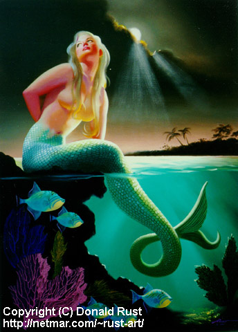 I have always wanted to be a mermaid. It's true, when I was little whenever I went swimming I would press my legs together and try and "swim" like a mermaid. My swimming instructor when I was very young said I "swam like a dolphin", he didn't know I was really a mermaid. I suppose The movie The Little Mermaid set me off, I LOVED that movie! I remember screaming with happiness as my dad showed me that he had bought it. I remember playing mermaid swimming games until I was about eleven or so, I would pretend to be a mermaid lost at sea, as I had been sleeping and drifted off, and that when I awoke I was outside a cabin (our cabin) with kids all around, and I couldn't let it be known I was really one of the mer-folk! These games were so fun, I'd play with my sister. I saw the movie Splash a gazillion times, it was my favorite. I think mermaids are some of the most delicate, wonderful creatures the imagination ever made up, and maybe, just maybe, there really are mermaids somewhere out there.