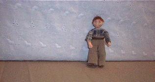 Little Andy is a child doll with red hair. He is wearing brown pants and a brown/blue shirt. $28.00 plus shipping.