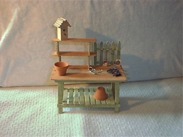 This is the garden bench from the anniversary issue of Dollhouse Miniatures Magazine. It was really a fun project.