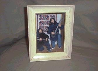 This is a vignette i created for my teenaged son who plays the guitar. Head and Munkey from the rock group Korn. I added a box on the back of a 5 X 7 picture frame. Picture frames make quick and easy roomboxes. And you can make them in the size you need. Very inexpensive. I made everything you see here--even the guitars, which i made from polymer clay.