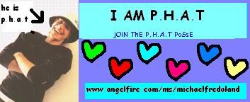 ok...this is how u become a member of the PP (phat posse)! U e-mail me at mfredogrl@michaelfredo.zzn.com and say u wanna become a member (put PP member in the heading thing) and then i will send u the password and username so u can get in!! come be P.H.A.T with us!! :) Also, if u have a website, i would appreciate it if you would put this banner on your site to show you are a member!