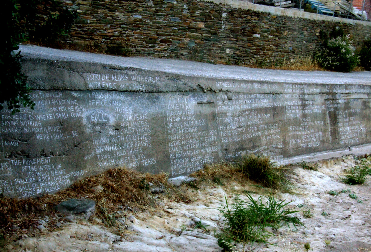 not written on the walls of a glorious ruin, but on concrete. I