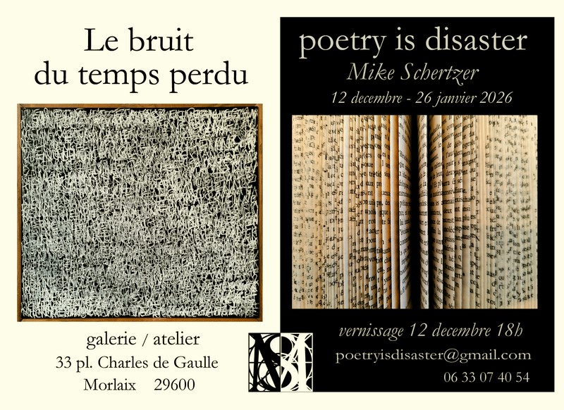vernissage 12 decembre 2025, 18h horaires mardi-samedi: 10h - 18h pour RDV: poetryisdisaster@gmail.com 06 33 07 40 54 expos passées (list) |