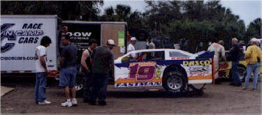 Here the #1 of Donnie Fleetwood becomes the 0 car at White Water Speedway, IN.