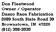 Donnie Fleetwood has been a race competitor for over 25 year's and knows his business well. He is known in this part if the country as a fierce competitor and former Track Champion at Flemming County Speedway in 1998.
