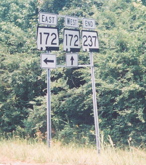 AL 237's southern terminus at AL 172 west of Bear Creek. AL 237's northern terminus at AL 13 in Phil Campbell. |