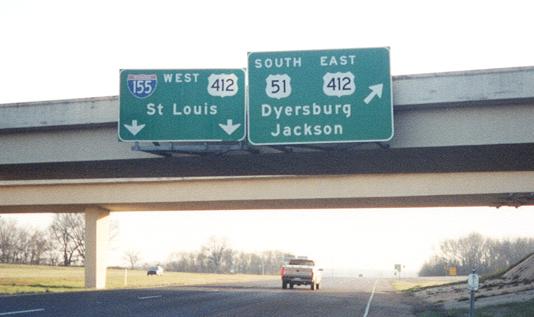 I-155 West US 412 - St. Louis / US 51 South - US 412 East - Dyersburg - Jackson (on US 51 SB at US 412) (Apr 2002)