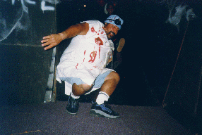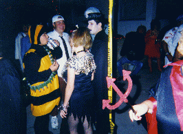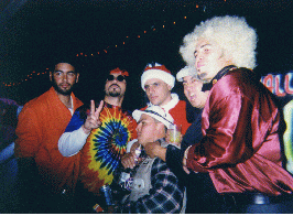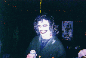 The party of 2001 was another success! The backyard and race shop were packed with a couple hundred party people all having a good time at the two full bars and dancing to the live band and dj music. For the first time in 8 years the cops showed up about halfway into the party to shut the band down, but they were cool cops if you can beleive that, and let us continue with the dj until about 4 am. I mean what the hell was I thinking? you can't have a concert in your back yard. (it rocked while it lasted) Other than that it went off without a hitch, No fights, no violence, just alot of drunks falling on thier faces or into kiddie pools, and the gallons of puke in the street,and the passouts on the floors. See Ya Next Halloween!!!! Here are just a few pics of the super Halloween party of 2001.