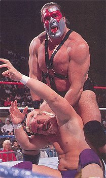 The Masked Superstar puts the boots to his opponent. 51kb