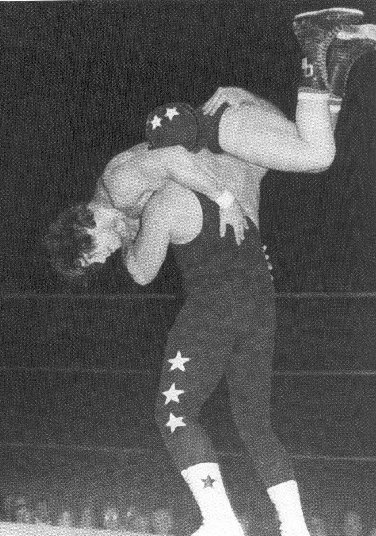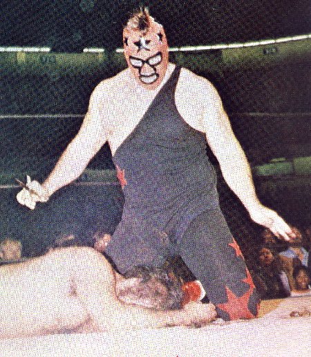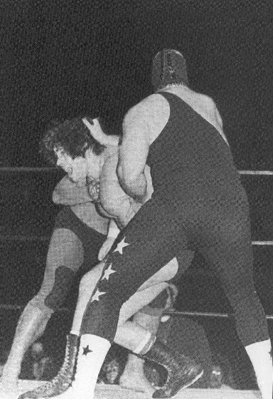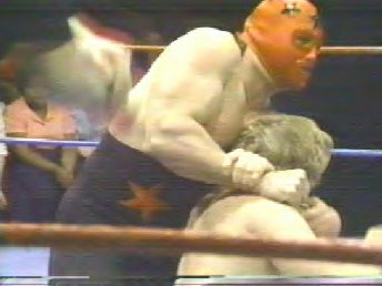 The Masked Superstar and Super Destroyer double team El Gran Apollo. 26kb