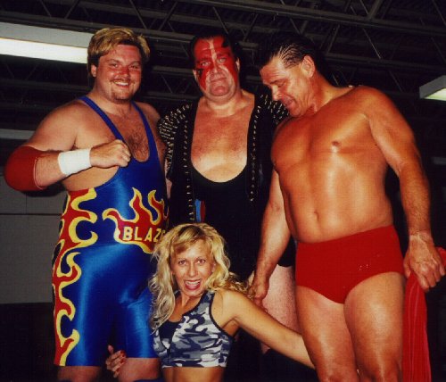 Indy stars,Tim Blaze and Brandi Wine with wrestling greats, "Hands Of Stone" Ronnie