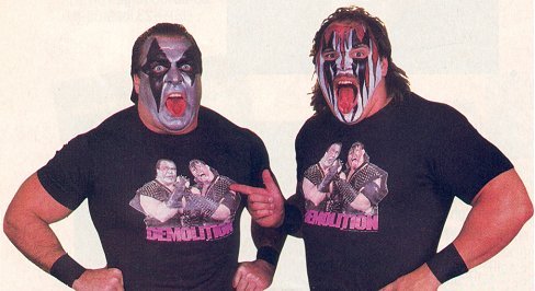 Ax and Smash model the latest Demolition t-shirt. 33kb