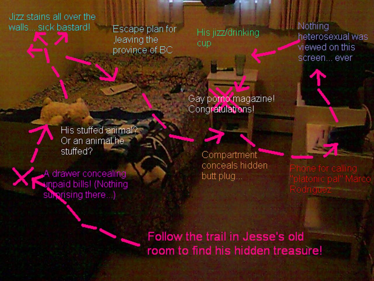 My old roommate Jesse pissed me off after he ran away to Saskatchewan, and although I don't like the guy, I was able to find this shot of his old room. He asked me to take this picture, so I added in a fun little map, that explains vaguely why I was a bit mad at him.