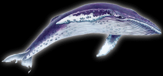 | BALEIA AZUL Família: Balaenopteridae Nome em inglês: blue whale Cosmopolita, ocorre em todos os oceanos. É o maior animal vivo da Terra e provavelmente o maior ser vivo de todos os tempos. O comprimento dos machos é de 25m e o das fêmeas 27m. Há registro de uma fêmea com 32m e outra com 30m. Pesando respectivamente 136.000kg e 160.000kg. Os filhotes nascem com cerca de 7m e 2.500kg de peso. Vive em grupo de dois a três indivíduos. Pode nadar a até 30 km/h. Comunica-se por sons. Alimenta-se preferivelmente de krill, podendo cunsumir até 8.000 kg num dia. |