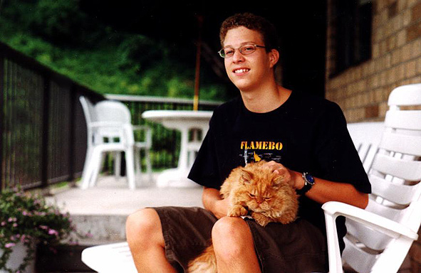 Ceci est chez mon père dans son condo, situé juste en face de la rivière et pas loin du Barage Hydro-Électrique, cela s'appelle le Domaine du Barrage. J'ai sur moi le chat de mon père, Zazou, un silkerk-Rex (désolé, ca se prononce comme ca mais je sais pas comment ça s'écrit). |