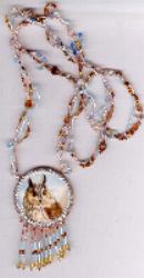 Then I attached the pendant to the cab and added 7 strands of fringe in alternating colors at the bottom."