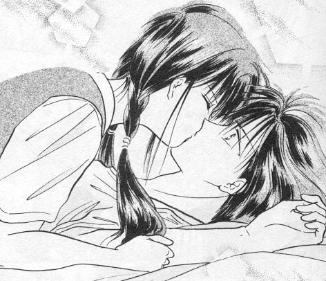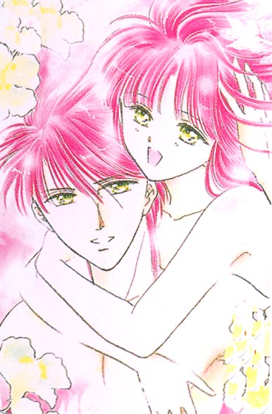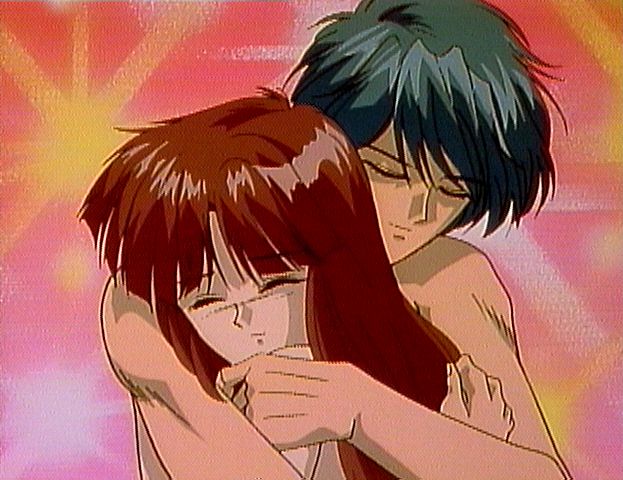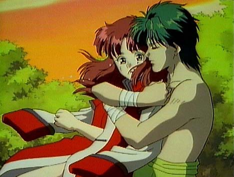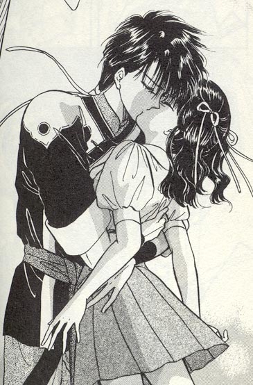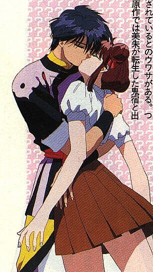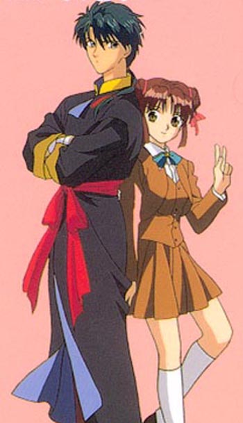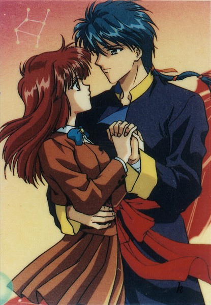 Miaka and Tamahome are one of the more passionate couples in anime. Although Miaka must stay a virgin throughout the series, they are one of the few anime (I say few because I don't count hentai as real anime. It's just porn to me)couples that actually discuss sex. Miaka is first to fall in love with the other(as usual the girl is more in touch with her feelings than the boy) Tamahome is in complete denial of his feelings for Miaka until she leaves him to return home. Tamahome is completly jealous of Miaka's friendship with the Emporer Hotohori(who is another Suzaku Seven)for Hotohori confesses his love for Miaka from the begining. But Miaka only loves Tamahome. They endure many hardships and almost don't even get to be together~_~. But luckily through the strength of their love they can be together at last.