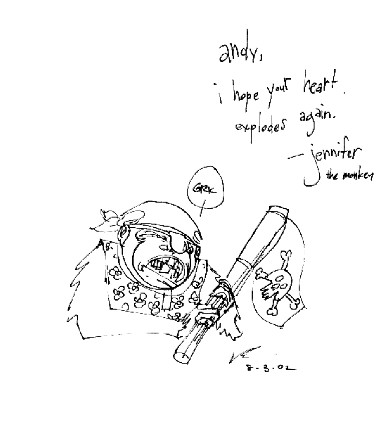 Q. if you could be any monster, what would you be and who/what would you stomp? A.You HAVE to go with Godzilla(always pissed off). And I would stomp Fred Durst and P.Diddy(I wish their hearts would explode).
