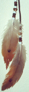 Here is a matched set that we did for a person, with a double dream catcher. We even painted wolf paws on the feathers (shown below). The options, and what we can do, are limited only by the imagination.