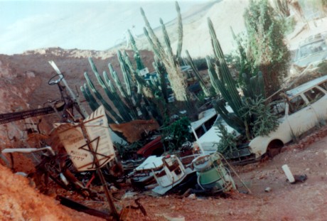![]() Personally, I was glad to have a wonderful place to stay for a few nights. I had met up with an old friend -Jeremy- at the party and discovered he had been living in Coober Pedy for the last year or so. So I got to see another side of the town from last year. His place was only 5km from the little town, but quite isolated. He lived out the back of 'Crocodile Harry's' (photo above), a home-come-tourist-attraction with a stream of Australian and European visitors. Harry is a 76 year old living icon, a German who spent much of his youth killing giant crocodiles (one photo showed him with one that's head alone was longer than his body!) with axes for a living in the Northern Territory. The outback archetype of 'Crocodile Dundee' is apparently based loosely on people like him. ![]() Harry has mined opals and lived on the edge of Coober Pedy for 26 years and his hand-dug-out home in a hillside is an amazing museum of strange assorted treasures and sculptures. A reknowned alcoholic womanizer, he has collected the signatures and painted graffiti of thousands of 'virgins' (don't ask how he proves this!) on his cave walls and roof. Whenever he runs out of room he digs another cave off from the existing complex. The front of Harry's is to me the most striking: rusty old junk sculptures everywhere that rattle and clank in the wind, creepers and giant cactuses growing over the cliff-face and out of old dirt-filled car bodies... A veritable desert oasis of recycling. Parts of 'Mad Max III' and other movies were made there.