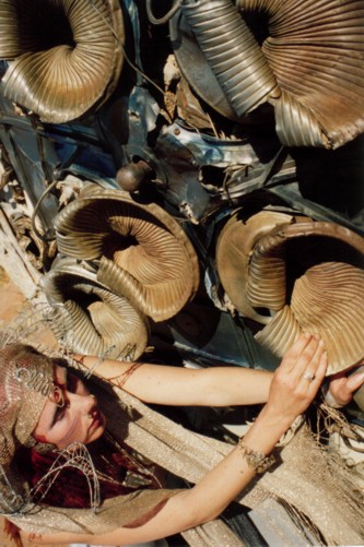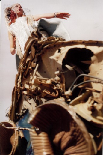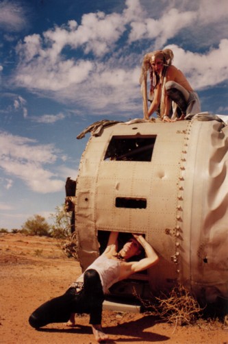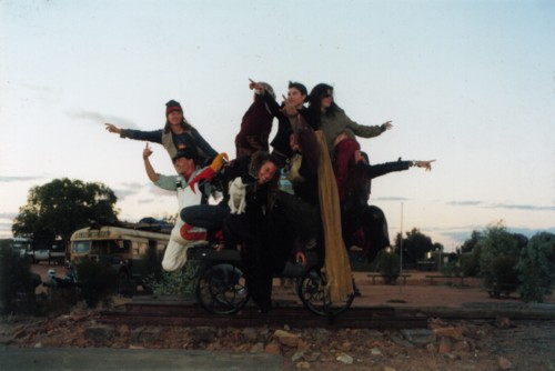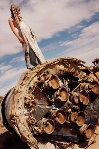 ![]() ![]() ![]() At Williams Creek there was some amazing old machinery in the square between the pub and the shop, old industrial engines and strange devices in the middle of nowhere, and even a used rocket ship! The HarleQuintet all dressed up for some super-8 footage and camera stills with these contraptions as potential material for the developing magickal-musickal device known as the Choronzon Machine. There are some wonderful images so far... ![]() ![]() ![]() We left after the second night at Williams Creek, driving straight through to the opal-mining town of Coober Pedy. Arriving around dusk, we were surprised and delighted to find the Earthdream party there had been organized and advertised for that night. Too bad we didn't have time to set up anything ourselves to perform, but we thought we would have missed it altogether with all the delays. It was an interesting night, although I was a bit travelweary to fully appreciate it. Earthdreamers and locals (black and white) mingled in friendly communion around campfires and on the dusty danceground at a site on aboriginal land (with their permission) about 11km from town. At about 3am several people noticed a large aureole (ring of light) around the moon. This had been seen around the moon at Alberrie Creek for a few nights before the storm kicked in. Sure enough, a few hours after dawn a fierce cold wind came through, followed shortly thereafter by a downpour of rain which continued incessantly over the next three days. Everyone packed and got out of the (lowland) area before the mud etc. got too formidable. Earthdream became scattered for the next few weeks over various dwellings and parking areas around and in town, congregrating here and there in cafes and pubs.