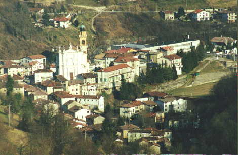 Valli del Pasubio. Panorama do centro e a igreja. Panorama del centro e la chiesa.