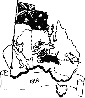 Judge: Miss P.McCombie (UK) Hosted by the Bull Terrier & Bull Terrier (Miniature) Association Of Western Australia Inc. April 21, 1999. From an entry of 93 (76 Bull Terriers and 17 Bull Terriers (Miniature) , Miss McCombie awarded Best Exhibit in Show to Kabullka Move Over Rover (right)( Brugown Black Onyx x Nichmari Shantelle) from the Puppy Dog Class. Bred and owned by R & S Brown from Tasmania.