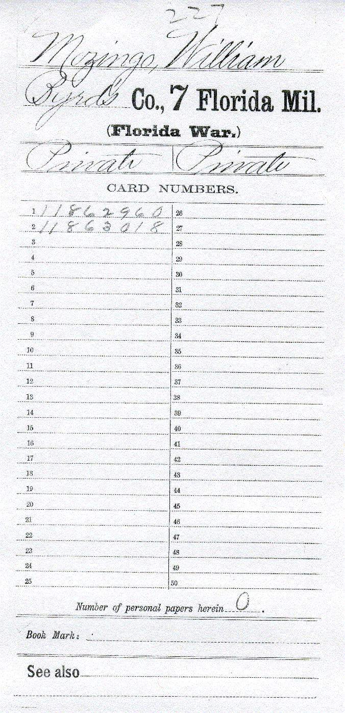 Florida Indian Wars - William Mozingo Service Records - Byrd's Company, 7th Florida Militia