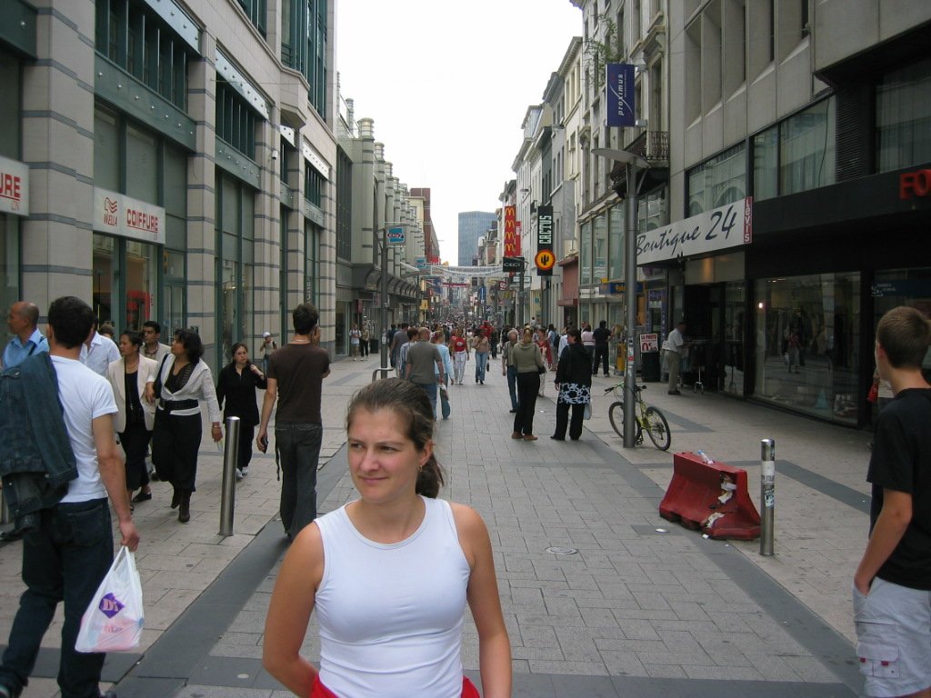 kelly wandering were we are going on a main steet in brussels