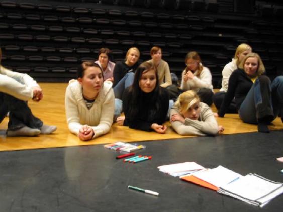 This is my Drama class. we are rehearsing our musical, which I don't think I am in, I just come to the class and do their activities. I may acutally be in it, they don't tell me much.