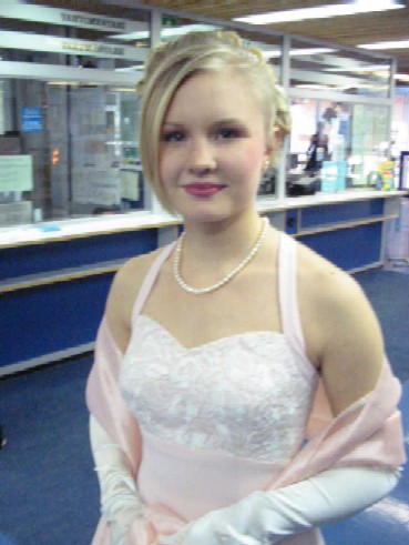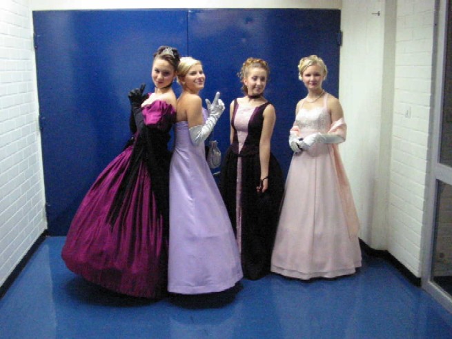 The girl in the Golden dress with me is just a friend. The girl at the end in the Red is Nanna, my first host sister. She attends a different school, but finished her dance early, so she came to mine.