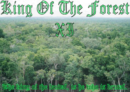 "Welcome everyone to a new era in the Robo Wrestling Federation, welcome to the King of the Forest!!!" Another large pop emanates from the crowd. "Despite the tragedy that has occured, we will go on to have a good time tonight and crown a new champion! I've waited a long time to say this, and now I have my chance. LET'S LET THE ASSKICKING BEGIN!!!" The crowd roars as GAP's music hits once again and he walks backstage through the curtain.