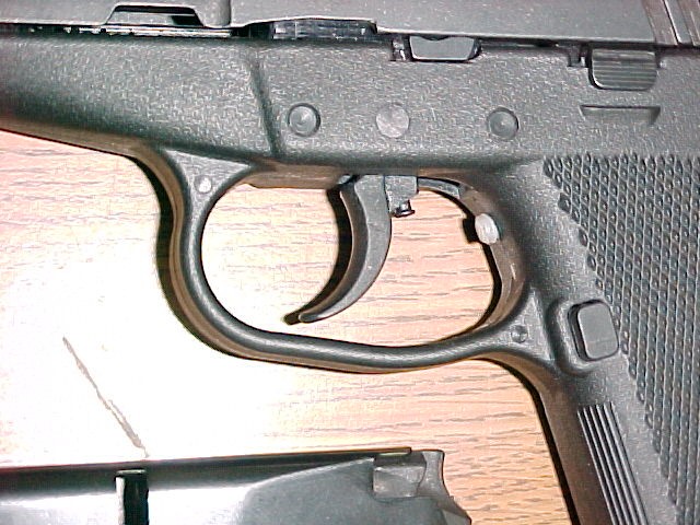 Step 1: Dis-assemble gun removing magazine, barrel/slide assy., and trigger