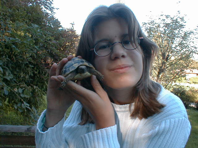 That's one of my turtles, it's name is Paley, because he's paler than the other one.. We have two turtles... The other is called Gloomy, because he's gloomy.. JThey are now three years old!!! |