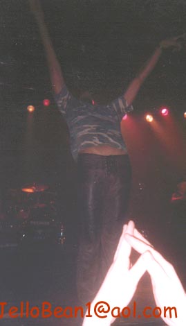 he's putting on braclets the crowd threw at him during "sunday girl" me and jess just kinda passed them to him and he put them on hehehe, one time when we met him we gave him braclets and he put them on yay:)