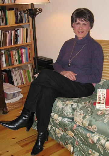 Now, the truth is, I have time on my hands, which as we all know can be dangerous! However, instead of going out on the town, looking for trouble (don't think I'm not tempted), I frequently curl up with a novel. Okay, I'm not exactly curled up in this picture, but the novel is visible, Dostoevsky's The Brothers Karamazov, which I read in my youth. It is a novel that bears rereading, I'd say, taking you into its wild 19th-century Russian world, with passion aplenty. If you want to see me in a more passionate mood--in fantasy, anyway--you might click here, where I envision myself a sexy lady.