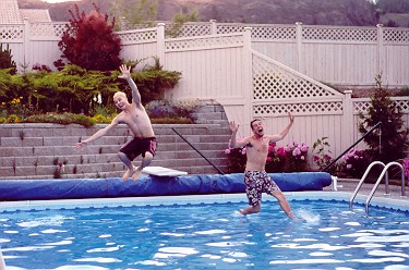 Hung out with Riley and Scott. (Who are jumping into the pool)