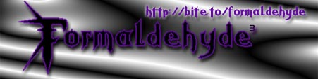 Welcome! Formaldehyde has entered Phase Three! With a New Band comes great new Things! Many Shows Are Being Planned! Cd Is coming out soon! New T-shirts are being deisgned! Buy Formaldehyde Boxers! sign the Guestbook! Email the band members! Keep checking back!