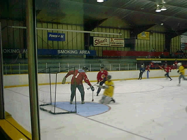 Here's some guy from the Boston Broomers crashing INTO the Ann's Army net.
