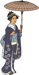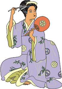 Literary translated, geisha means "Beauty Person" or "Person who lives by the arts", and that they do. Geisha are masters in the arts; trained in music, calligraphy, Sado (tea ceremony) poetry, conversation and social graces as well as a three stringed instrument called a Shamisen. They dress in traditional kimonos, gorgeous in their elegance. Simple wooden geta clogs are worn for footwear, and hair is up in coiffures adorned with metallic accessories. The makeup of centuries is a white foundation, lips are painted a stark red. For the younger girl, only the upper lip is painted. For extra sensual appeal, a red streak is painted at the nape of the neck, for the more neck you show, the more risque your costume.