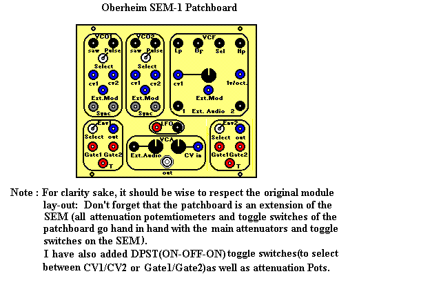 If you don't want to go through the hassle of constructing a patchboard, use the space ABOVE each module (long strip of steel frame where the ON/OFF AC Mains switch is located) and drill holes there : use mini-jacks or banana jacks to gain space.