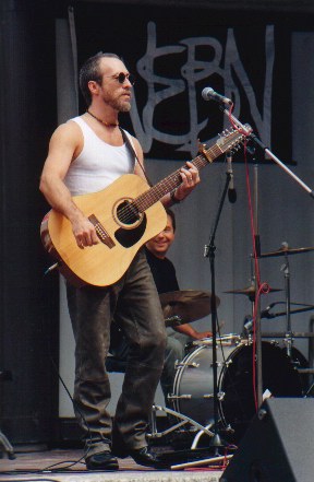 This is me with Chris Novy, Annette and Ashley Shepherd playing the opening ceremony for the MidPoint Music Festival, Fountain Square, Cincinnati, '02 Photo copyright 2002, Martha Kuperman